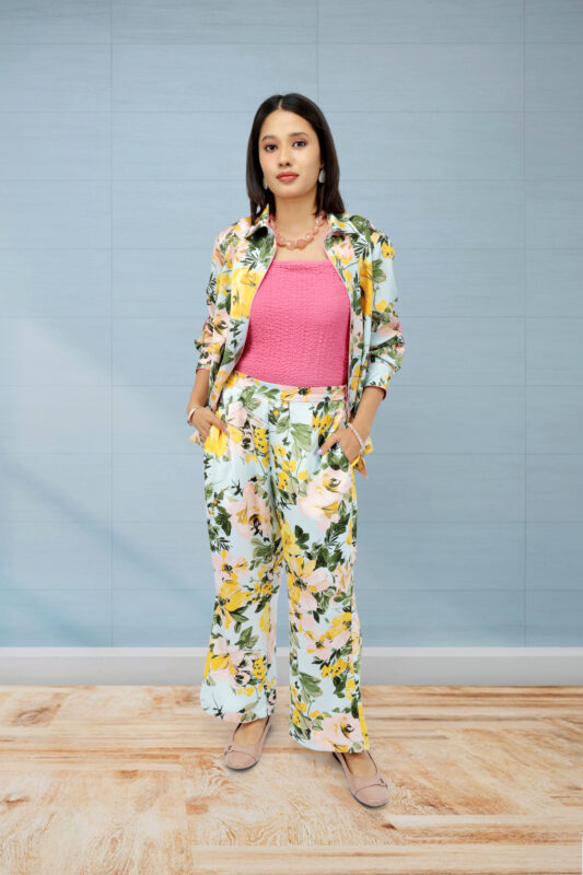 Women’s Sky Blue Floral Printed Satin Co-ord Set