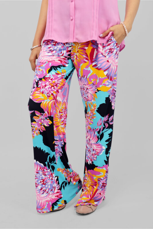 Women’s Teal Floral Printed Wide Leg Palazzo Pants