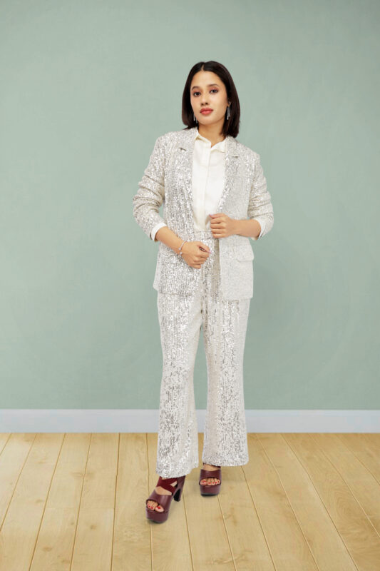 Glam Champagne Sequin Co-Ord – Jacket & Flare Pants