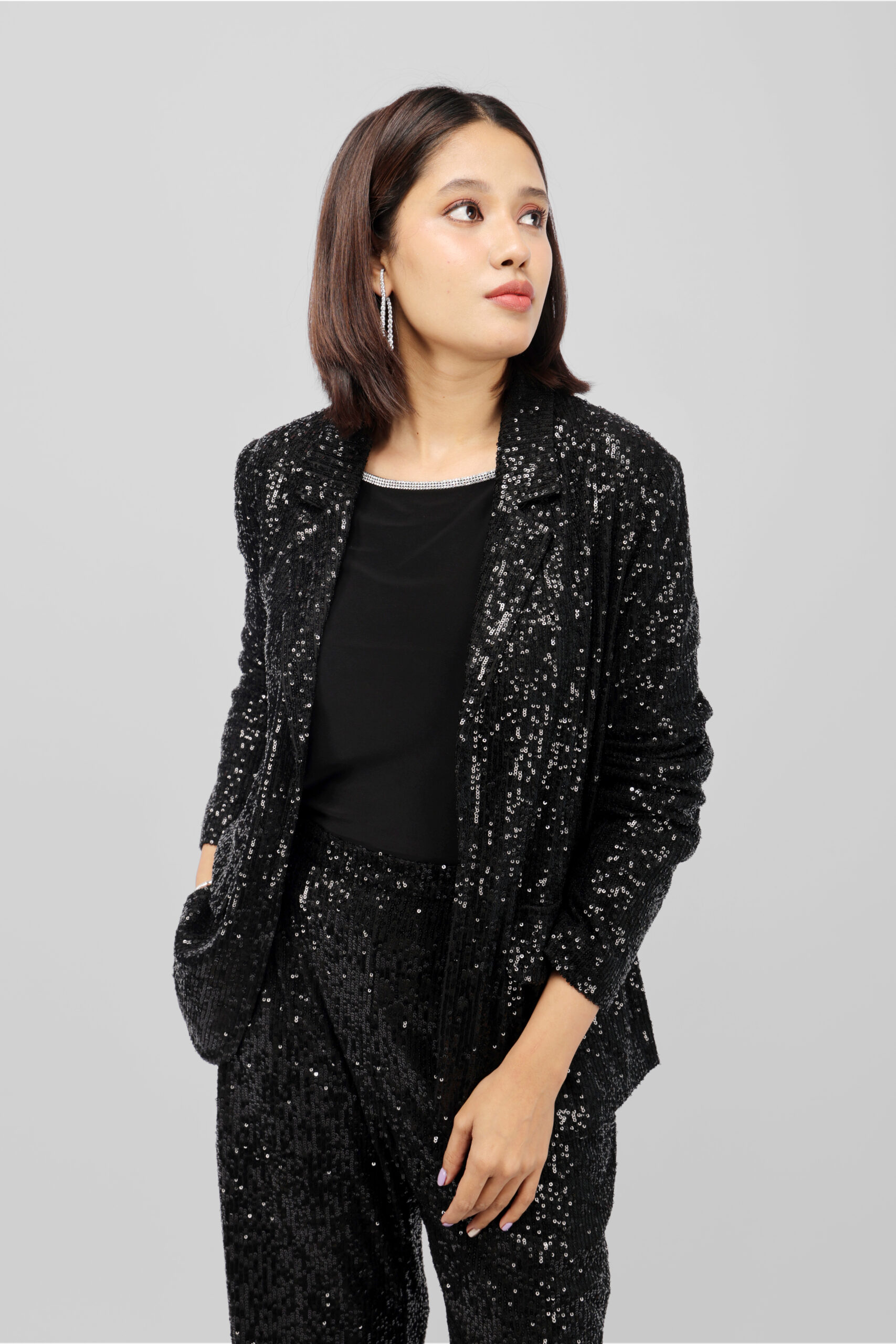 Be the first to review “Black Sequin Jacket with Flared Pants Co-Ord Set”